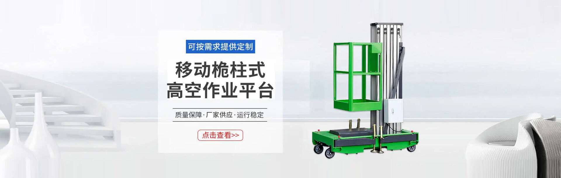 本公司生产各规格型号液压升降机械和高空作业平台的设计制造。产品质量符合JB/T9229.1(2.3)-1999标准,具有设计新颖、结构合理、升降平稳、操作简单、维修方便等优点。广泛应用于工矿企业、铁路、公路、机场、邮电、石油、电力等部门的高空作业、安装、维护;仓库、码头,生产线上的货物装卸、输送、堆垛;体育场馆、会堂及其它高层建筑的场景布置、装饰、维修和清洁工作 。